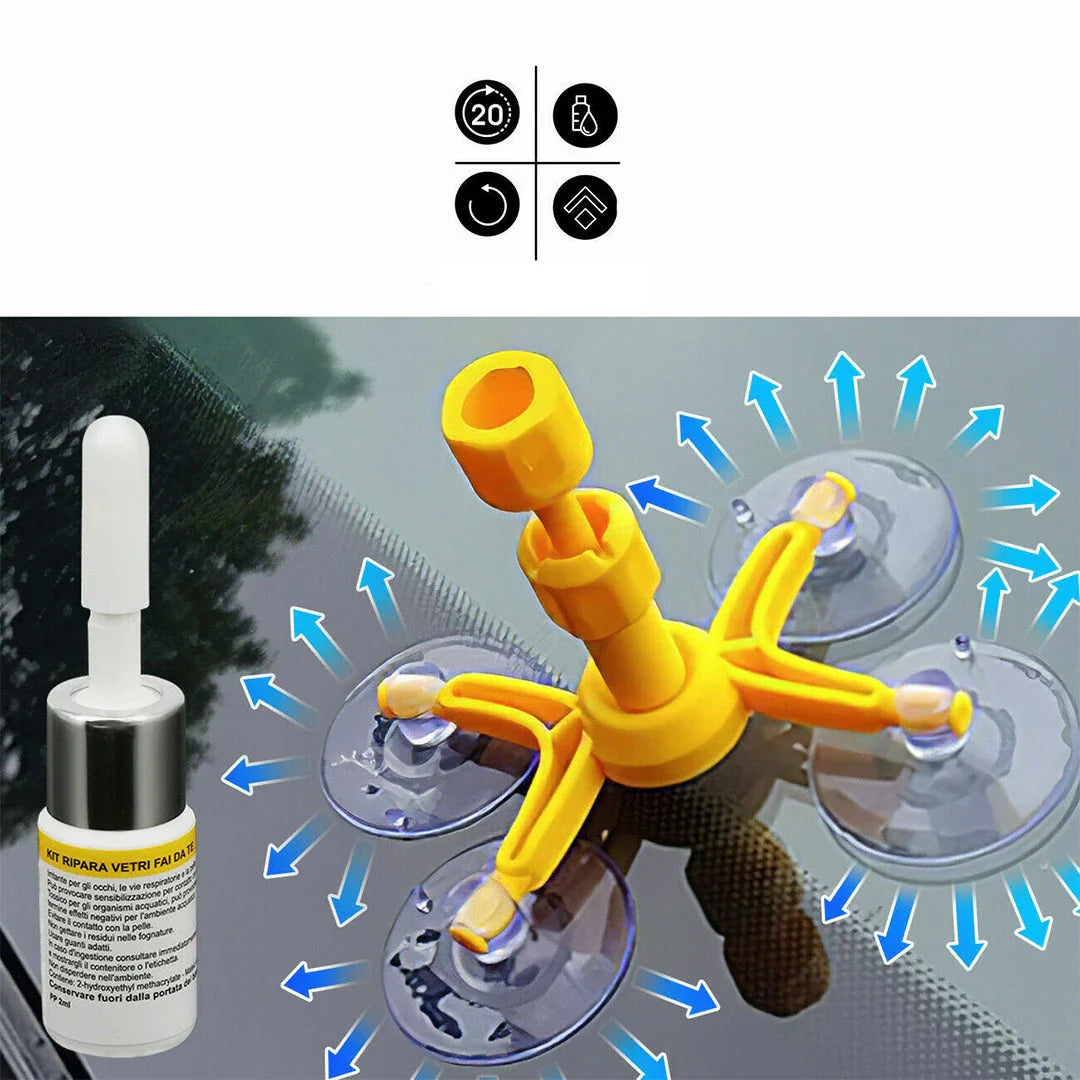 مجموعة الإصلاح: هي عبارة عن مجموعة أدوات تساعد في إصلاح الكسور والتشققات في الزجاج الأمامي للسيارة، إصلاح لمدة 20 دقيقة، مما يوفر التكلفة والوقت.