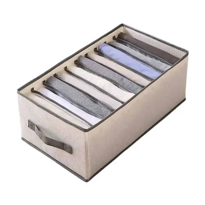 بفضل الفواصل البلاستيكية المدمجة، يتمتع هذا الصندوق بتنظيم عالي. يمكنك تكديس العديد من الملابس للحصول على أقصى استفادة من المساحة خزانتك وغرفة الملابس.