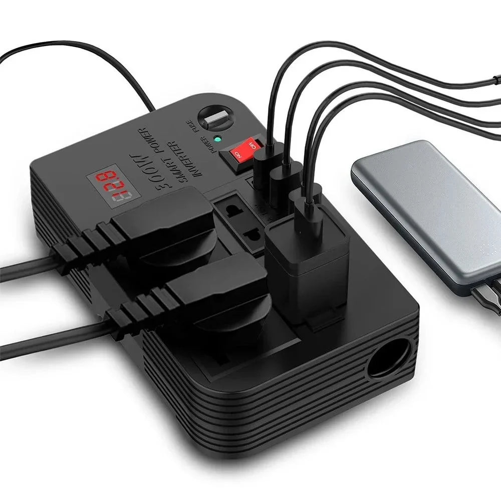 محول طاقة للسيارة 12 فولت الى 220 عالي التردد بقوة 300 واط متعددة المنافذ