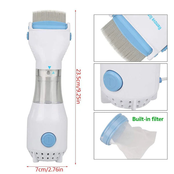 يتكون من كيس صغير قابل للإزالة في نهاية المشط يحبس كل البيض وقمل الرأس التي تم شفطها ، مما يجعل التخلص منها سهلاً وصحيًا