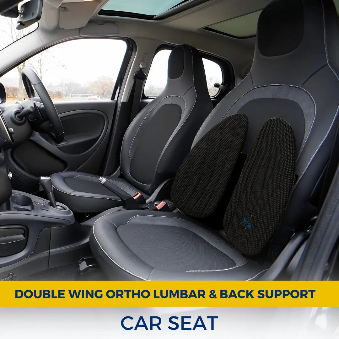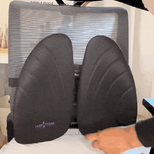 "تحتضنك الأجنحة المزدوجة بكامل ارتفاعها مثل يد مطمئنة، وتوفر دعمًا شاملاً لأسفل ظهرك. تحتضن الأجنحة ظهرك، مما يعزز المحاذاة الصحيحة للعمود الفقري ويخفف الضغط على عضلاتك، مما يؤدي إلى تقليل الانزعاج والإرهاق."