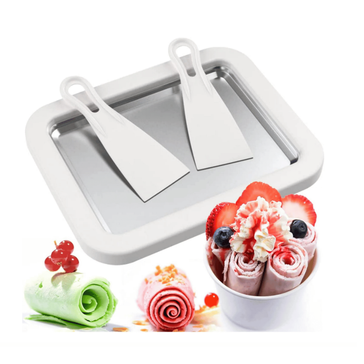 استمتع بصنع رولات الآيس كريم اللذيذة بأذواق متعددة في راحة منزلك. مع منتجنا، يمكن لأطفالك الاستمتاع بتحضيرها بسهولة